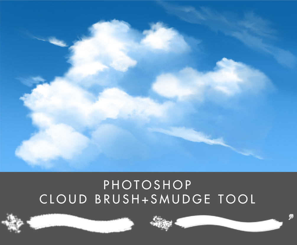 A simple cloud brush I made for Photoshop + a smudge tool I frequently use for painting clouds.